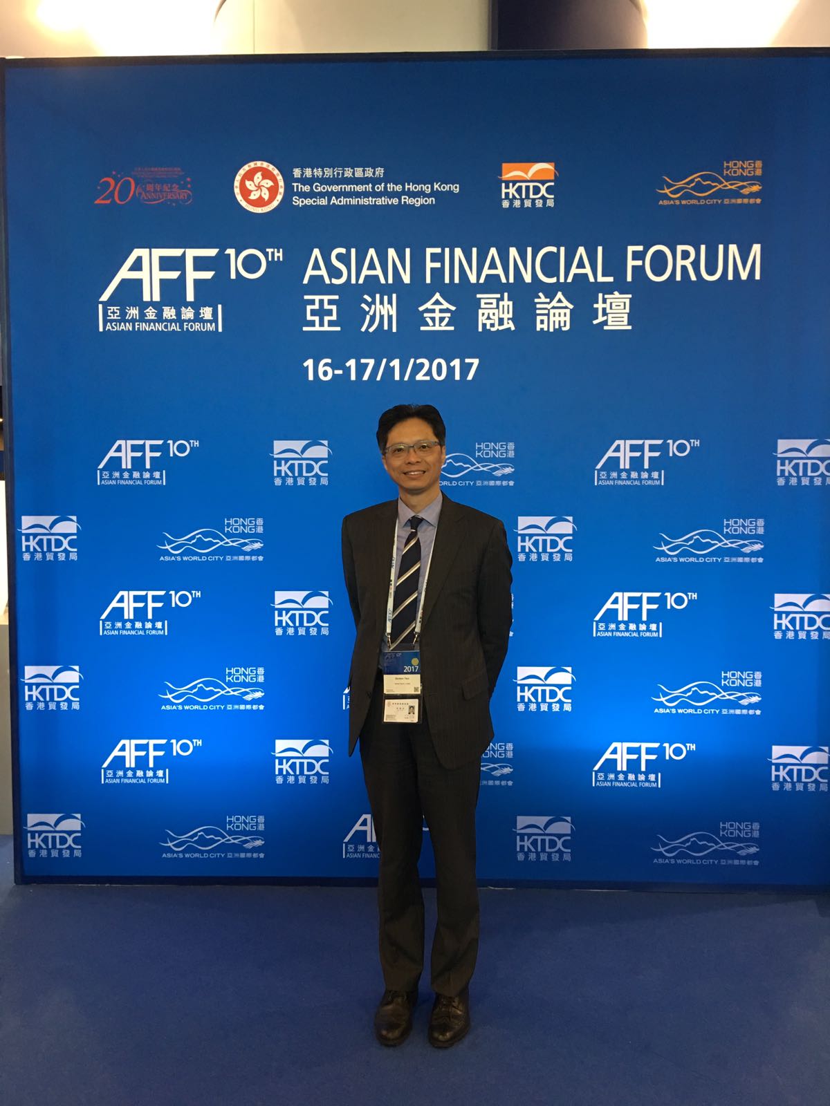執行委員徐聯安博士獲邀參加亞洲金融盛事「第十屆亞洲金融論壇」,是次論壇於1月16及17日一連兩天假香港會議展覽中心舉行,大會以「亞洲:帶動變革,創新與聯繫」為主題,匯聚香港及各國政府官員、中央銀行及監管機構代表和金融與工商業界翹楚,共同探討亞洲地區如何在勇於創新及加強與不同地區的聯繫下,促進環球經濟的持續增長。行政長官梁振英、財政司司長陳茂波及財經事務及庫務局局長陳家強等先後在論壇上致辭。